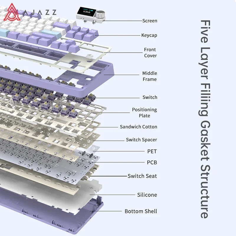 The Ajazz AK870 RGB Mechanical Keyboard delivers a smooth and modern typing experience wrapped in a compact 84-key layout. Its tri-mode connectivity—Bluetooth, 2.4G wireless, and Type-C wired—gives you complete flexibility for gaming, work, and travel. The built-in TFT display adds a futuristic touch, offering real-time info and quick visual settings. Hot-swappable sockets make switch customization simple and tool-free. The keyboard’s RGB lighting spreads evenly across the keys, creating vibrant effects that elevate any desk setup. Its compact size keeps your workspace clean while still preserving essential functions. The mechanical switches provide a crisp, responsive feel that suits both rapid gameplay and long typing sessions. With stable wireless performance, lag stays low and reliability stays high. The sturdy build gives the board a solid, premium feel. It pairs easily with desktops, laptops, tablets, and more. Anti-ghosting ensures every keypress registers accurately. The keyboard’s ergonomic design keeps hands comfortable during extended use. Whether you’re gaming late into the night or refining your workflow, the AK870 delivers both style and performance.