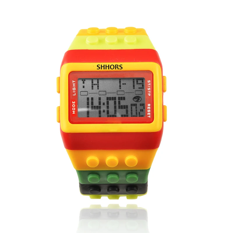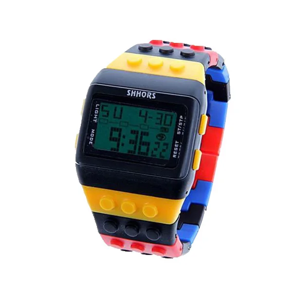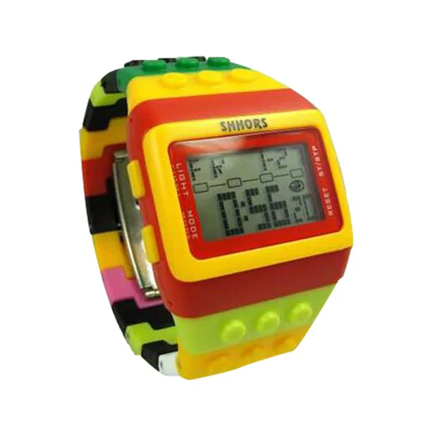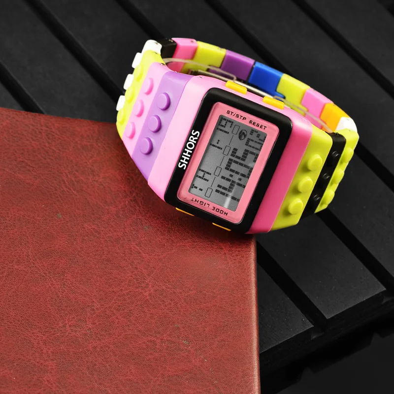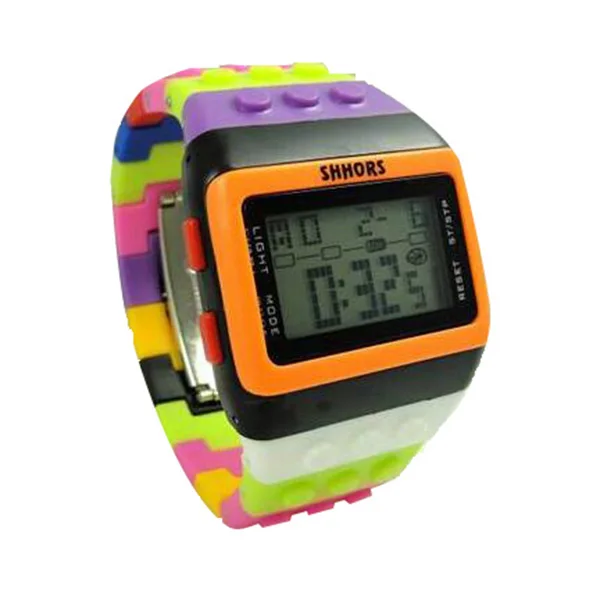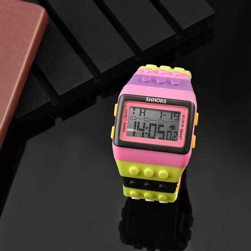 The SHHORS Rainbow LED Watch is a fun and vibrant digital timepiece that blends playful design with practical features. Built with a plastic case and silicone band, this watch is lightweight and durable — ideal for everyday wear. It features a colorful block-style strap, allowing you to adjust the band by removing links to perfectly fit your wrist, much like building with toy bricks. According to specs, you get LED backlighting, making it easy to read the time even in low light or dark settings. Ubuy Malaysia+1